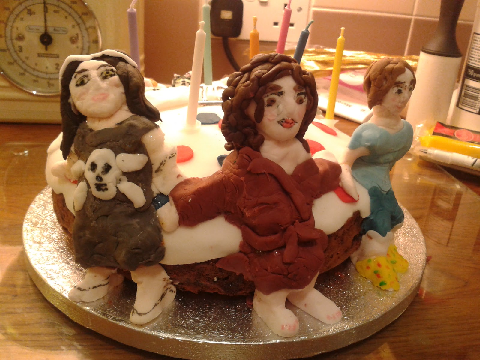 Above is a picture of a cake that my owner made me for her mother's 70th Birthday. I found the whole thing a major inconvenience. It is meant to show my owner with her two sisters when they were teenagers. Frankly, the whole thing was a total waste of time as she frittered away about three hours modelling icing when she could have been admiring my great beauty, playing ball games with me or pushing her hands through my bounteous fur. I will discourage such further crafting actitvities. Even worse, the cake did not feature my great self but did feature some rather scruffy cats from the past. Imagine!